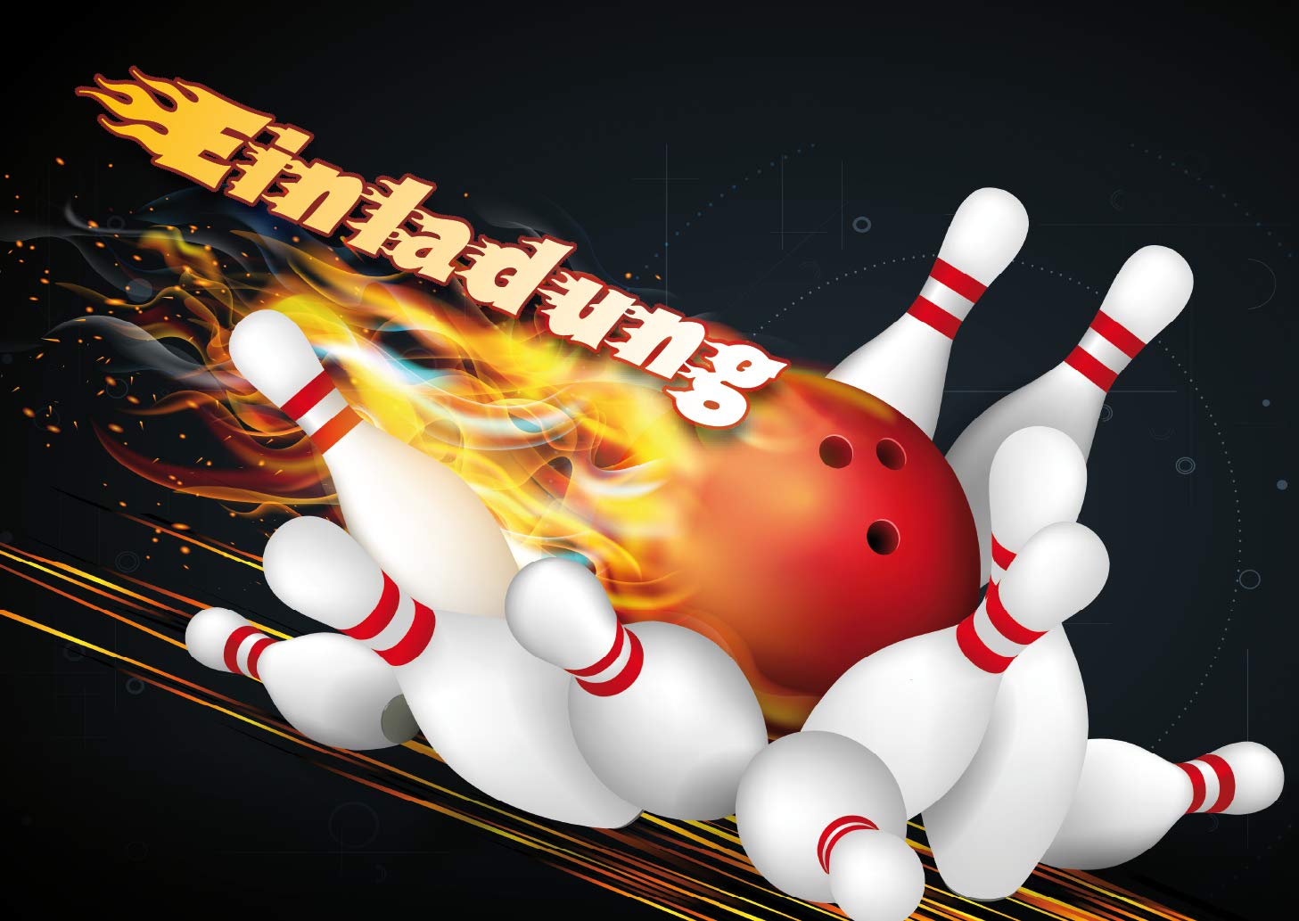 • Sie erhalten 10 Einladungskarten zum Bowling mit einer feurigen Bowling-Kugel, die in die Pins hinein rast: STRIKE!