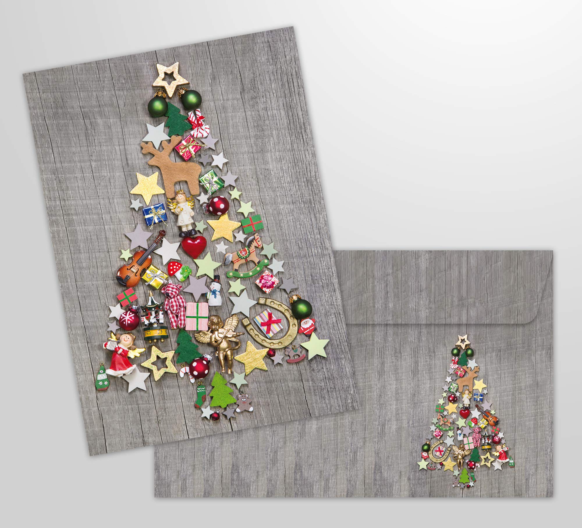 INKLUSIVE UMSCHLÄGEN: Im Set enthalten sind 10 passende Umschläge mit den Weihnachtsbäumen