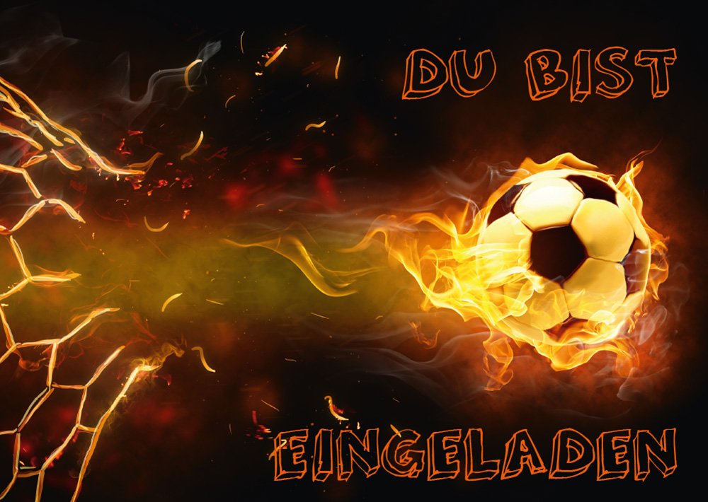 • Sie erhalten 12 feurige Einladungskarten zum Fussball-Kindergeburtstag im Format 14,8 x 10,5 cm (DIN A 6) - das klassische Postkartenformat