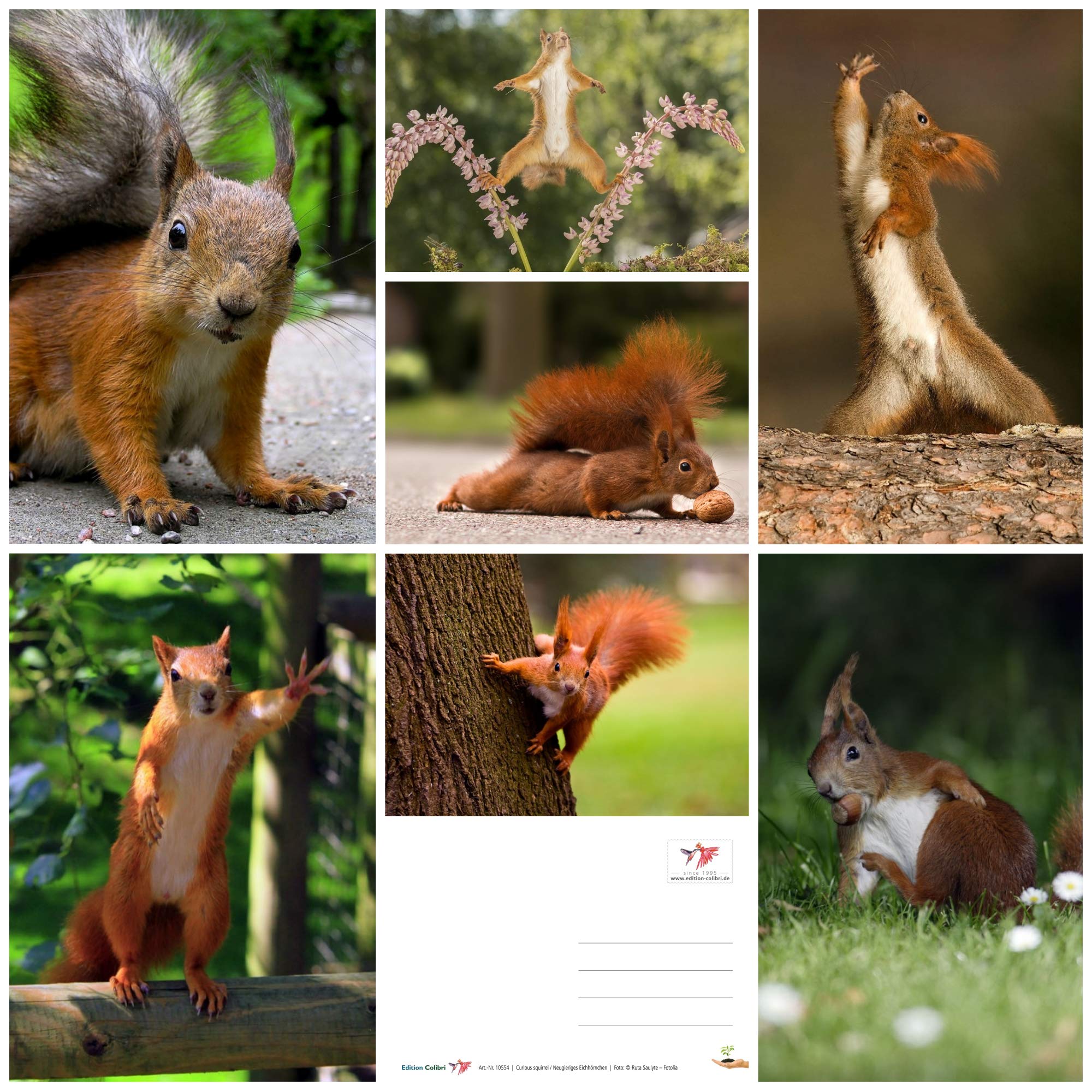 • Sie erhalten 7 Postkarten mit lustigen Eichhörnchen. Alles verschiedene, ausdrucksstarke Motive