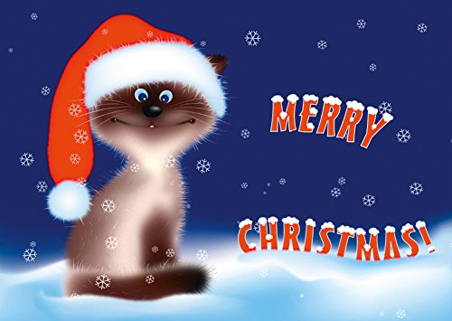 • Süsse Weihnachtskarte von einem jungen Kätzchen mit Weihnachtsmütze